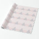 Papel de embrulho de Natal cor-de-rosa com listras brancas de fevron e uma bela árvore de férias.