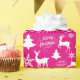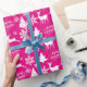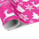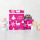 Papel de Natal Fresco Feriado Fresco Rosa Quente Fresco Feriado Molhado com renas dançarinas, árvores de Natal, flocos de neve, e saudações de Feliz Natal para um divertido padrão de férias de inverno. Este papel de embrulho Xmas fofo é excelente para todos os tipos de presentes e presentes para meninas!