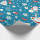 Papel de embrulho do tema de Natal. Santas, árvores, flocos de neve e perdizes. *Cartão de nota correspondente disponível.