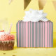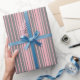 Este design de papel de embalagem apresenta cinzas e rosas claro coloridas de listras. Pode ser divertido usar papel de embrulho como este quando se preparam presentes ou presentes sendo dados em comemoração de um aniversário, casamento, aniversário ou qualquer outro evento.