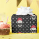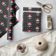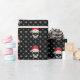 O perfeito papel de embrulho de férias com um crânio com um chapéu de Santa detalhado colocado sobre um fundo preto cheio de flocos de neve. Veja a coordenação de itens em nosso compro, Finch Encantado