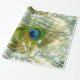 Papel de embrulho de férias magnífico com uma bela pena de pavão, uma tenda prateada e luzes de Natal cintilantes