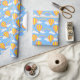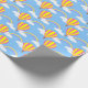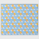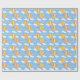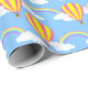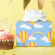 Um papel de embrulho projetado com um balão de ar quente e padrão arco-íris em azul. Personalize o fundo azul entre outras opções.