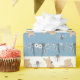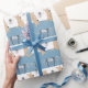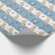 Papel de embrulho para o tema do canguru, que apresenta um doce canguru-mãe e bebê com padrões de flores e um esquema de cores azul e castanho-do-país. Perfeito para uso em chás de fraldas, aniversários ou em qualquer ocasião.