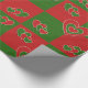 Papel de enrolamento com um bonito padrão cardíaco verde e vermelho.