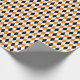 Um papel de embrulho projetado com um padrão de harlequin preto, laranja e branco. Personalize a cor branca de fundo entre outras opções.