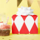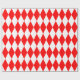 Papel de embrulho concebido com um padrão de harlequina vermelho e branco em tamanho extra grande. Personalize a cor branca de uma forma fácil.