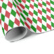 Um papel de embrulho projetado com um padrão de harlequin vermelho-escuro, verde e branco. Personalize a cor branca de fundo entre outras opções.