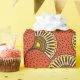 Este pacote de presentes colorido único tem um padrão gráfico ao estilo Ancara criado digitalmente, feito com ventiladores amarelos em um fundo vermelho e preto. Este design é único e não será encontrado em nenhum outro lugar. O papel de embalagem é excelente de um Natal afrocêntrico, Kwanzaa, aniversários, aniversários, 12 de junho, formandos, festas de tronco da HBCU ou qualquer reunião festiva.