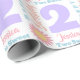 Enrole seus presentes de aniversário neste papel de embrulho de tipografia roxo, rosa, azul e amarelo. O número 2 é a maior parte do design para enfatizar a idade. certifique-se de personalizar com o nome de seu filho de 2 anos para que todos saibam quem é doce.