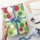 O verde festivo e os pontos vermelhos de salto dão a este estilo retrógrado de papel de embrulho. Este papel de embrulho divertido é excelente para o Natal, feriados, adolescentes, crianças, presentes de Natal, etc... O design é da arte original.
