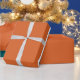 Enrole seus presentes em estilo com este presente em aqua e laranja com sotaques brancos.
