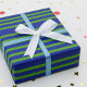 O papel de embrulho de presente personalizável apresenta uma incrível mistura de tons primavera verdes e azuis em um design listrado moderno e elegante. Este versátil papel de embrulho é perfeito para o Dia do Pai, aniversários, aposentadorias, presentes para o lar, ou para qualquer pessoa que ame a combinação refrescante de tons azuis e verdes. © Wafa Y. Dahdal - Todos os direitos reservados.