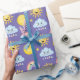 Imagens adoráveis de um sol sorridente feliz, a lua, uma pequena estrela, uma nuvem chuvosa, e, finalmente, um maravilhoso arco-íris. Clique para personalizar ainda mais para alterar a cor de fundo (que, neste caso, é definida como roxa).