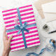 Papel de embrulho concebido com um padrão listrado, rosa e branco, a quente, em tamanho médio. Você pode mudar o rosa para uma cor diferente.