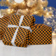 Papel de embrulho concebido com um padrão de controlo preto e laranja de tamanho médio. Personalize a cor laranja de forma fácil.