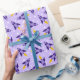 Um padrão fofo de foguetes retrorreflectores roxos e estrelas brancas em um fundo mauve.