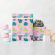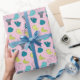 Fiquem festivos com desenhos sofisticados de frutas e vegetais em cores brilhantes de turquesa, limão, chalé e rosa! Este papel de embrulho polivalente, que inclui banana, maçã, nectarina, abacate, brotos, alface e tomate, é uma forma excelente de vestir um presente especial ou usá-lo em um projeto decorativo para casa de fazer você mesmo.