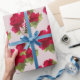 Embalagem floral de design elegante. Flores aquarelas, rosas vermelhas sobre fundo leve. Papel de embrulho elegante para presentes para casamentos, para Dias de as mães e para qualquer ocasião em que se pense um rosa. Rosas são maravilhosos para dar a alguém que você ama. Mande rosas no embrulho de presente para alguém especial.