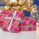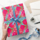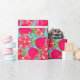 Este papel colorido de embalagem apresenta um padrão repetido de frutas de romã pintadas.