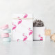 Bonito flamingos cor-de-rosa num fundo branco decoram este papel de embrulho de uma festa tropical, fazer-o perfeito para um aniversário, chá ou qualquer ocasião especial de Verão.