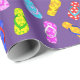 Este belo papel de embrulho personalizado apresenta um padrão giro e tendencioso de sandálias de chinelos coloridas sobre um fundo cor púrpura. Perfeito para embrulhar um presente para uma mulher ou garota que ama sandálias!