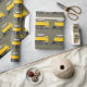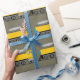 O papel de embrulho RR2 é decorado com pequenos motores a vapor amarelos contra fundo escuro, papel de embrulho de presente de excelente