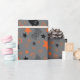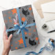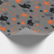 "Papel de Acondicionamento Sem Costura para Cinzas com Fantasmas e Estrelas" mostra fantasmas encantadores que derivam através de um céu noturno cheio de estrelas, ao lado de palavras festivas do Halloween como "boo", fazer ideal para uma celebração assustadora.