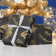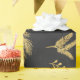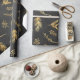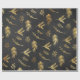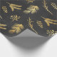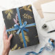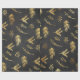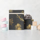 Os botanicals temáticos do Natal que incluem o pinho e os ramo spruce caem delicadamente através destes preto e papel de envolvimento bonitos, originais do ouro. O efeito do shimmer do ouro do falso estala contra uma textura preta macia do quadro.