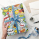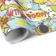 O papel de envolvimento da banda desenhada com provérbios gosta do crescimento! Prisioneiro de guerra! e Poof! Bolas de canhão e nuvens do pensamento nas cores de vermelho, amarelo, verde em uma luz - fundo azul.