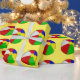 O papel de envolvimento mostrado com uma bola de praia bonito imprime em um fundo amarelo. Personalize este artigo ou compre-o como é.