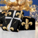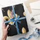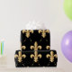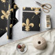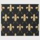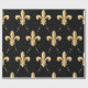 Papel de envolvimento com teste padrão da flor de lis do ouro no fundo preto. Aperfeiçoe para toda a ocasião, moderno, na moda, e elegante.