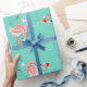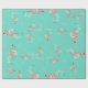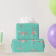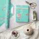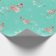 O design à moda com um toque retro que caracteriza os flamingos cor-de-rosa festivos que vestem os chapéus, estrelas vermelhas e as palmeiras do papai noel decorados com baubles ajustou-se contra um fundo do aqua. Um design customizável para que você personalize com seus próprios texto, imagens e ideias. Uma imagem digital original da arte criou pelo chique subtil.