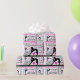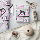 Este papel de envolvimento da ginástica caracteriza um fundo branco coberto com os termos da ginástica em uma variedade de pias batismais e cores. Há 4 silhuetas diferentes do gymnast durante todo o design.