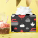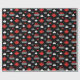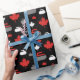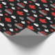 Papel de envolvimento que caracteriza uma folha de bordo e que ondula o teste padrão da rocha no vermelho, no branco e no cinza no fundo preto. Aperfeiçoe para encrespadores e fãs de ondulação.