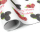 Papel de envolvimento do aniversário do divertimento feito no branco, com as fotos das framboesas e de bagas pretas. O texto vermelho lê o feliz aniversario da baga e pode ser personalizado para toda a ocasião.