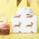 Este papel de envolvimento caracteriza o Dachshund o mais adorável do Natal do watercolour, com seus chapéu pequeno bonito do papai noel e lenço woolly.