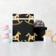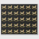 Papel de envolvimento do Natal com os cavalos de balanço bonitos do ouro que são decorados com os elementos do design do feriado que incluem uma árvore de Natal, uma grinalda, e uns sinos do feriado. Papel de embrulho seus prsents no estilo, estilo do feriado.