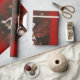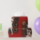 Este papel de envolvimento é ilustrado com um dançarino da senhora do diabo do vintage. O fundo é vermelho com uma lua enfrentada crânio e as estrelas.
