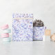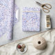 A dispersão do lilac azul-violeta pequeno floresce o oll de enchimento o espaço em um fundo branco. Papel de envolvimento floral
