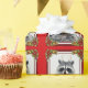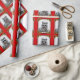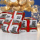 Envolva seus presentes de Natal com urso do açúcar o Racdeer com o nariz vermelho em um quadro festivo em um fundo vermelho. O urso do açúcar vem completo com um nariz vermelho e os antlers.