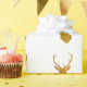 Um fundo branco com uma cabeça do veado/cervos do brilho do ouro do falso cria uma sensação moderna para este envolvimento do Natal. Os Tag e as etiquetas de endereço de harmonização estão igualmente disponíveis em minha loja.