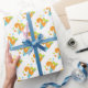 Estrelas amarelas, alaranjadas, verdes, e azuis acima de um stegosaurus do bebê azul que veste um chapéu do partido e um t-rex verde do bebê que vestem um chapéu do partido que guardara um presente ao lado de uma grande laranja dois (2).
