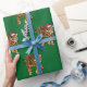 Um desenho de um tigre dos desenhos animados que vestem um chapéu de Papai Noel e de um lenço em torno dele é pescoço.