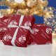 Papel de envolvimento elegante do Feliz Natal com folhas e bagas do azevinho. Ideia do papel de embrulho de Personalizable com nome e mensagem feitos sob encomenda dos feriados. Cores customizáveis e cumprimento vermelhos ou verdes do fundo. Surpreenda sua família; pai, mãe, vovô, irmã etc… com cumprimentos personalizados das estações. Design chique da tipografia para presentes elegantes.