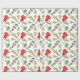 Um rolo de Giftwrap à moda, com um teste padrão de emblemas nacionais de Galês, incluindo dragões vermelhos pequenos bonitos, daffodils, alho-porros, harpa e uma menina vestiu-se no traje tradicional de Galês; de uma ilustração pintado à mão do watercolour por Judy Adamson.