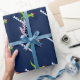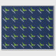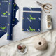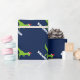 Papel de envolvimento bonito do Natal do dinossauro para miúdos. Dinossauro verde do rex de t com o giftwrap do chapéu do papai noel personalizado com nome dos childs. O design pré-histórico engraçado do papel de embrulho do dinasaur para o feriado dos rapazes pequenos apresenta. Faça um para o filho, neto, bebê novo, neto. Ilustração animal dos desenhos animados do t-rex pre histórico selvagem para crianças. Rex do tiranossauro de Papai Noel do divertimento. Azul feito sob encomenda do IE do fundo da cor.