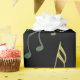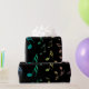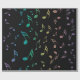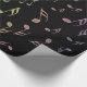 Papel de envolvimento ensolarado das notas musicais do arco-íris. Notas coloridas da música em azul, em verde, em roxo, em cor-de-rosa, o ouro e as máscaras entre a conexão em cascata abaixo de uma página preta. Um toque musical festivo para os feriados ou alguma ocasião especial, especialmente ao envolver para seu músico favorito. #notes #musician #music que #wrapping #holidays