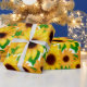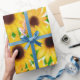 O design original das belas artes de girassóis europeus amarelos alegres pelo artista Carolyn McFann do estúdio de ronrom de dois gatos imprimiu no papel de envolvimento da qualidade para toda a ocasião.