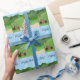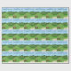 Este papel de envolvimento Golfing desportivo do dia dos pais caracteriza um fundo do campo de golfe com uma armadilha de areia e a bandeira do golfe, um carro de golfe vermelho, um carro de golfe azul ambos com as bolsas de golfe. O texto estilizado dos peixes é dia dos pais feliz. Aperfeiçoe envolvendo presentes do dia dos pais. Escolha seus meios e tamanho do papel de envolvimento.